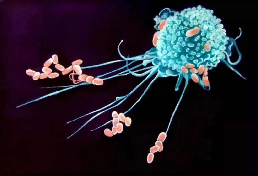 自然杀伤细胞属于白细胞的一种,它是人体忠诚的卫士,主要任务就是亡羊补牢——消灭那些已经被病毒感染的细胞,从而把病毒消灭在“摇篮”中。