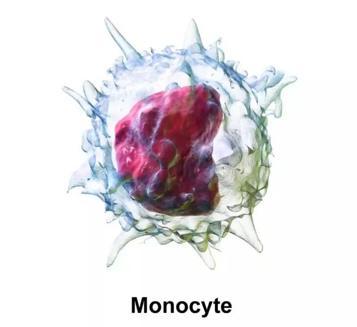 当单核细胞从血液中离家出走,来到血管外,到身体的其他组织中时,单核细胞的体积会增大,直径可达50~80微米,这时,它就不叫单核细胞了,它变成了一个更加强大的人体斗士——巨噬细胞!
