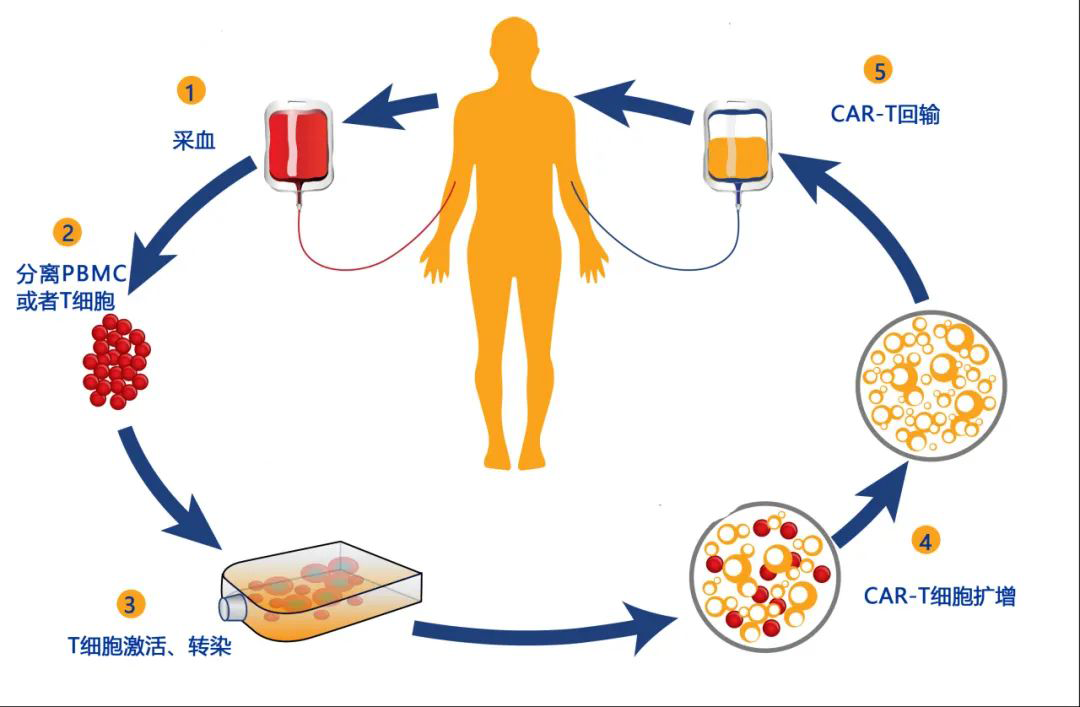 免疫细胞疗法顾名思义是用人体自身的免疫细胞去治疗病症的一类方法。取患者少量的外周血,对其中的免疫细胞进行体外增殖、活化,再回输至患者体内的一种免疫疗法。